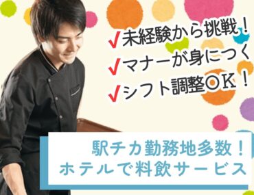 伏見駅近くのホテル内バンケットサービス!バイトデビュー&未経験スタート多数☆制服貸与あり・交通費別途支給・従業員食堂あり☆働きながらマナーも学べるホテルバイト。まずはお気軽にご応募ください!