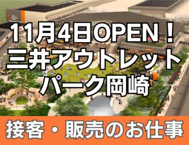 勤務地 | 愛知県岡崎市舞木町金森 三井アウトレットパーク岡崎 名鉄名古屋本線『本宿』 |